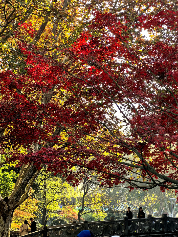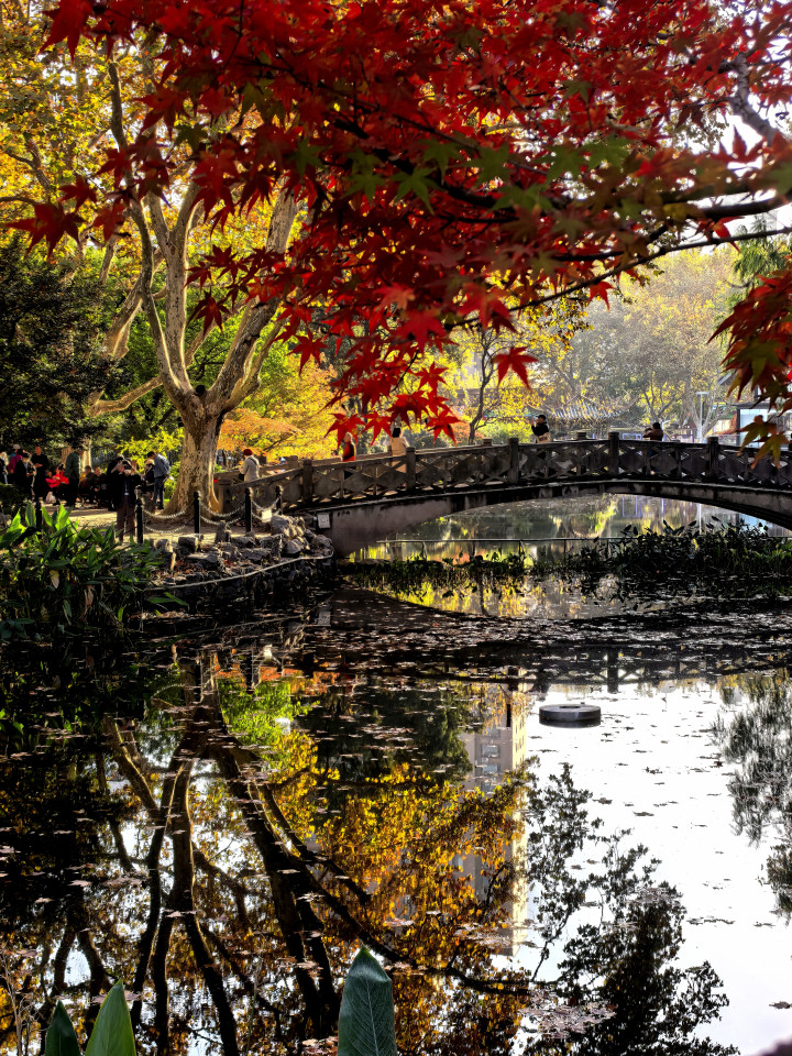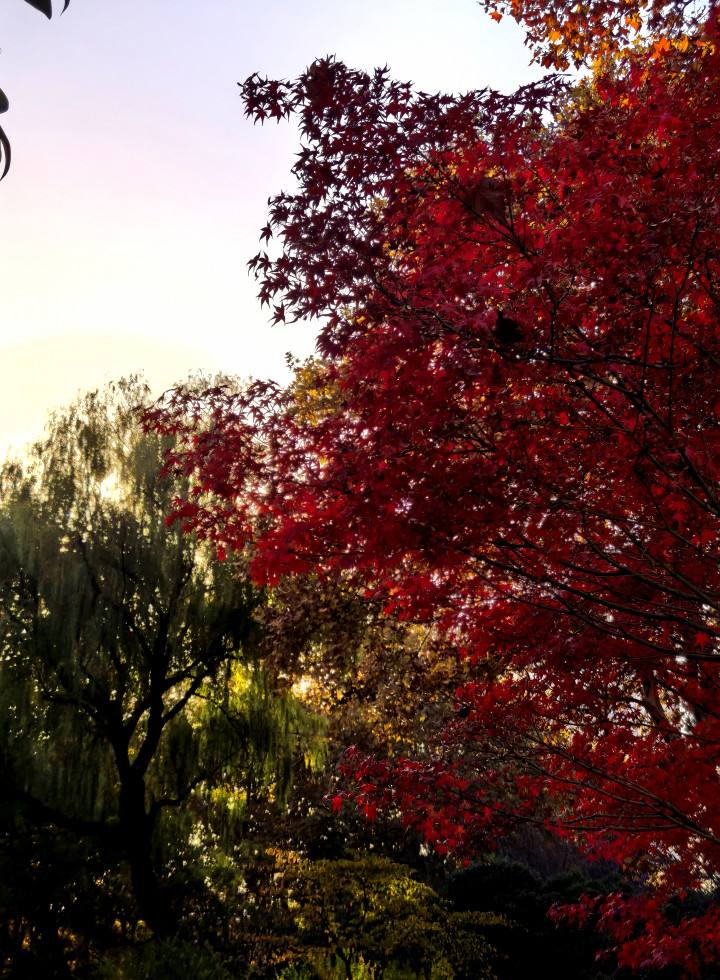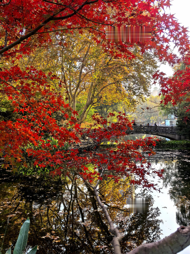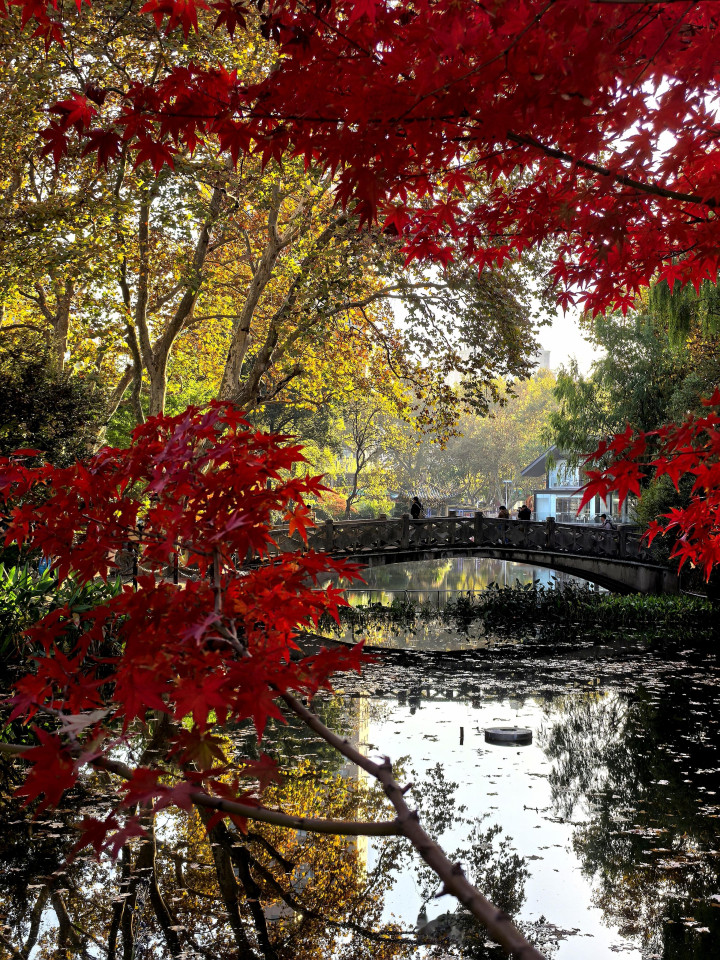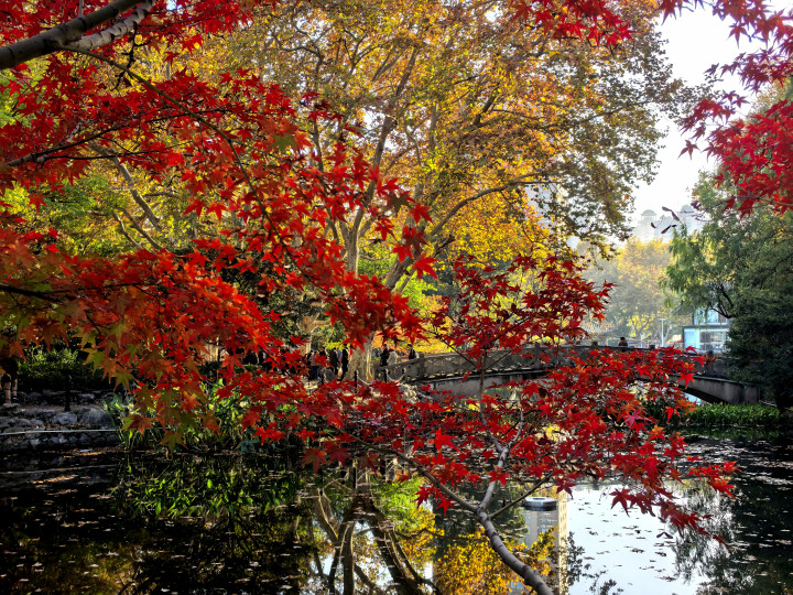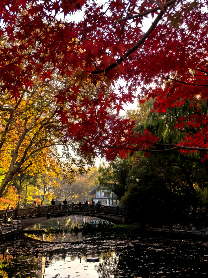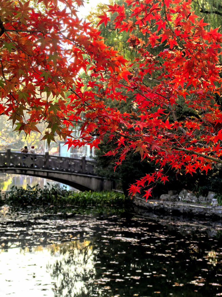 鲁迅公园拍摄红枫最佳时间是十二月上旬,这时的公园是一片红色的色彩。
