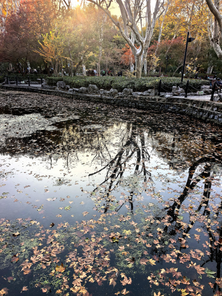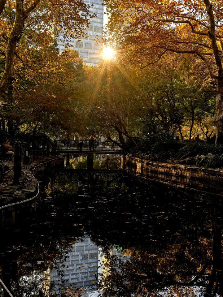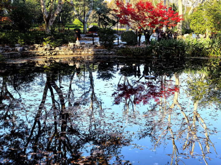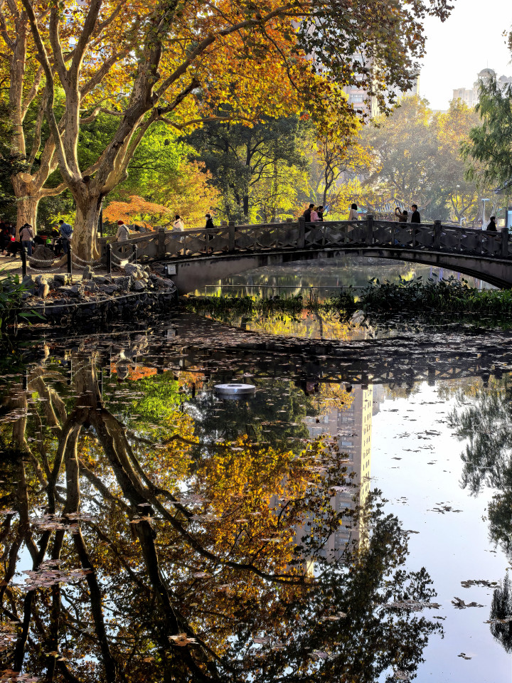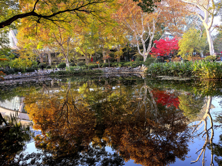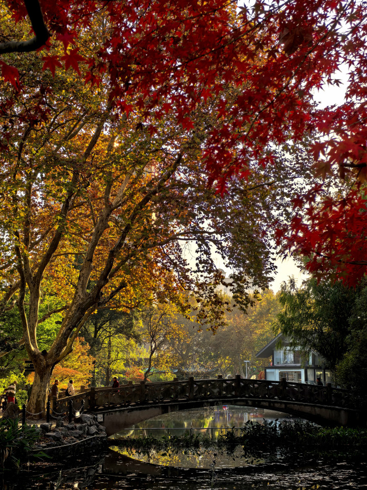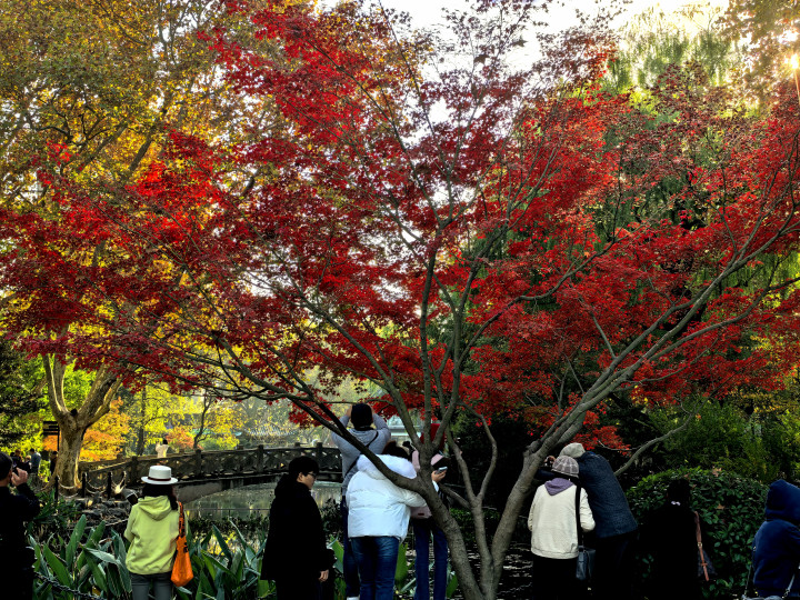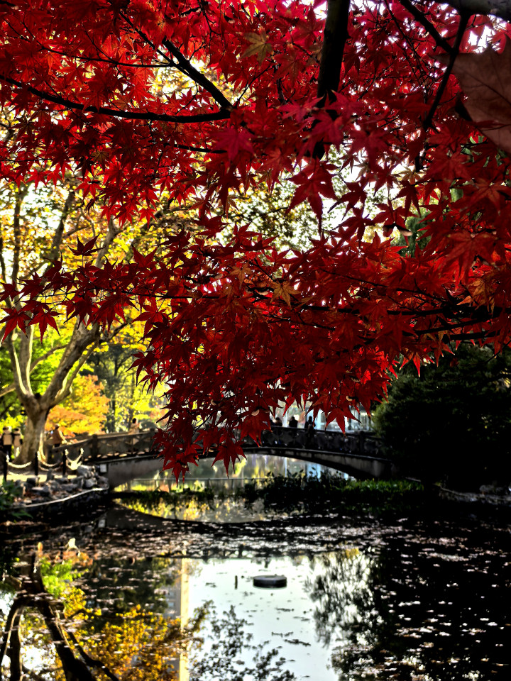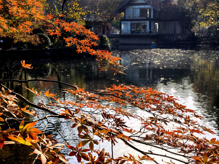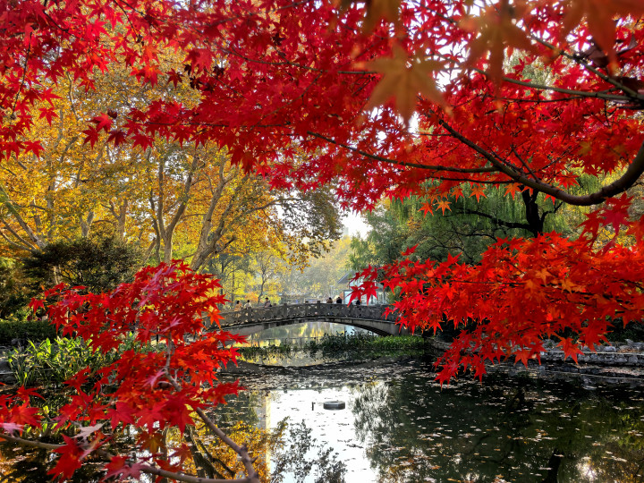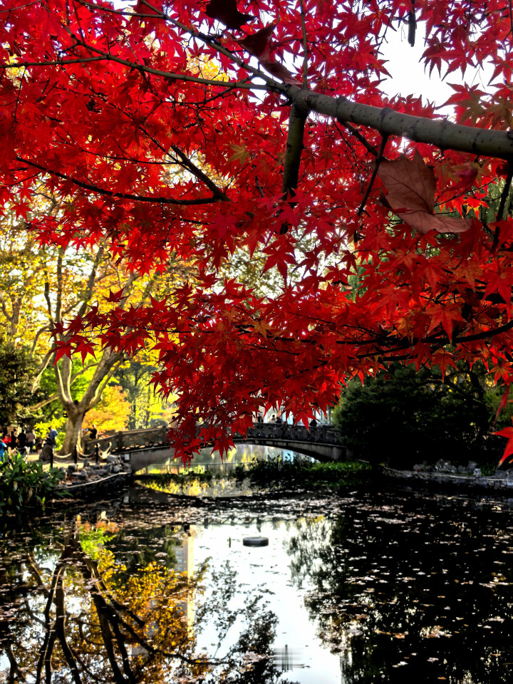 鲁迅公园拍摄红枫最佳时间是十二月上旬,这时的公园是一片红色的色彩。