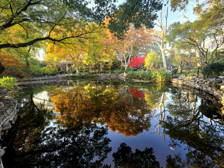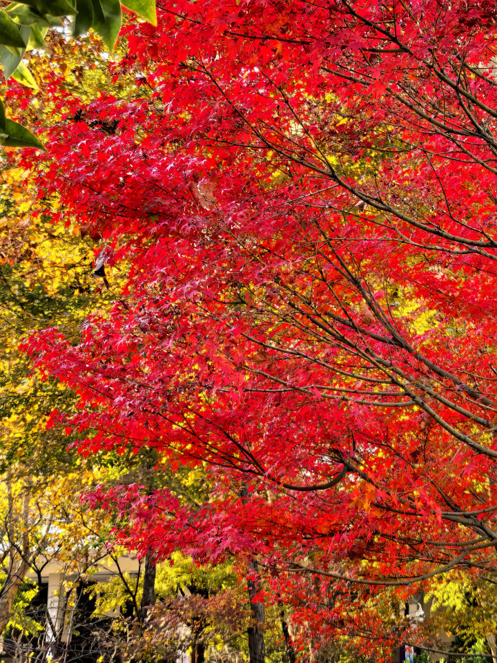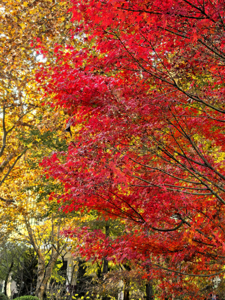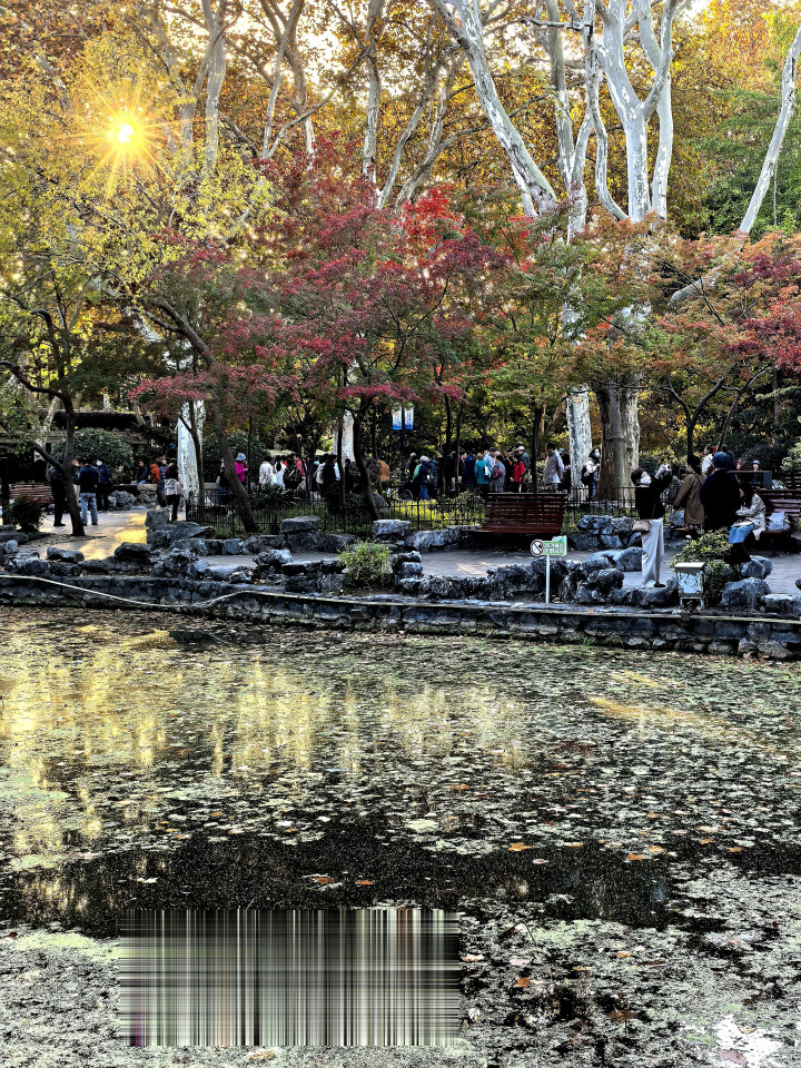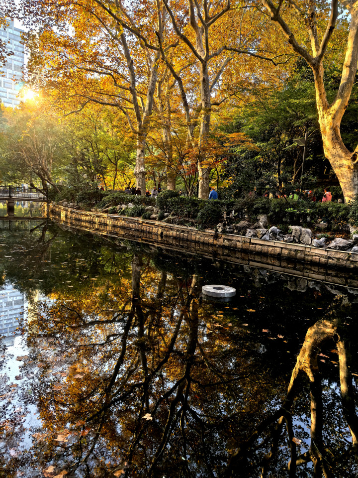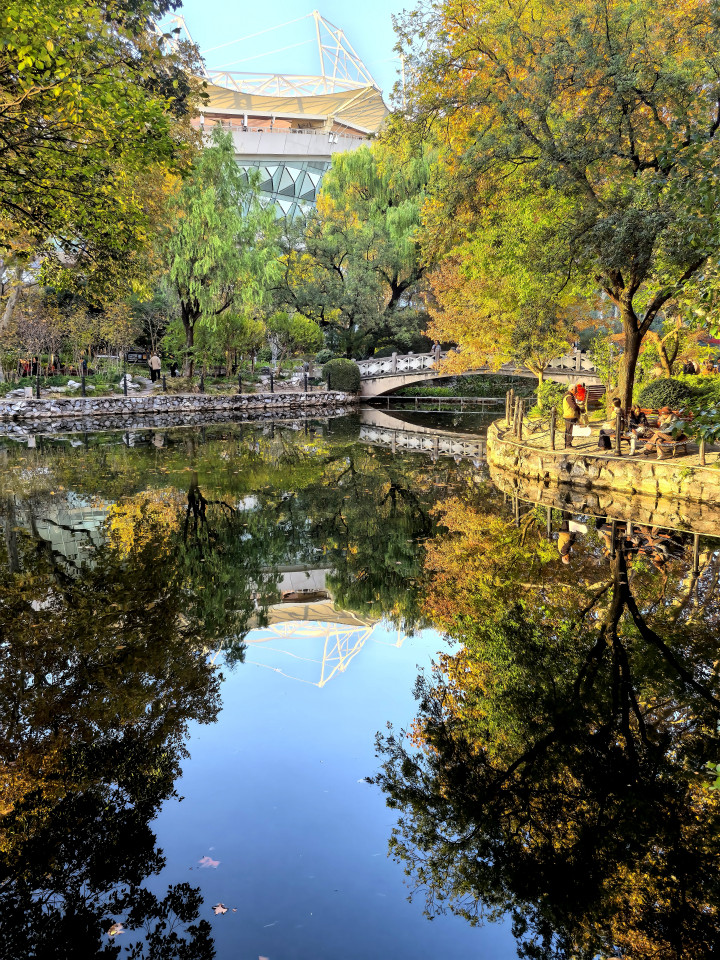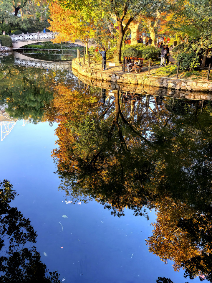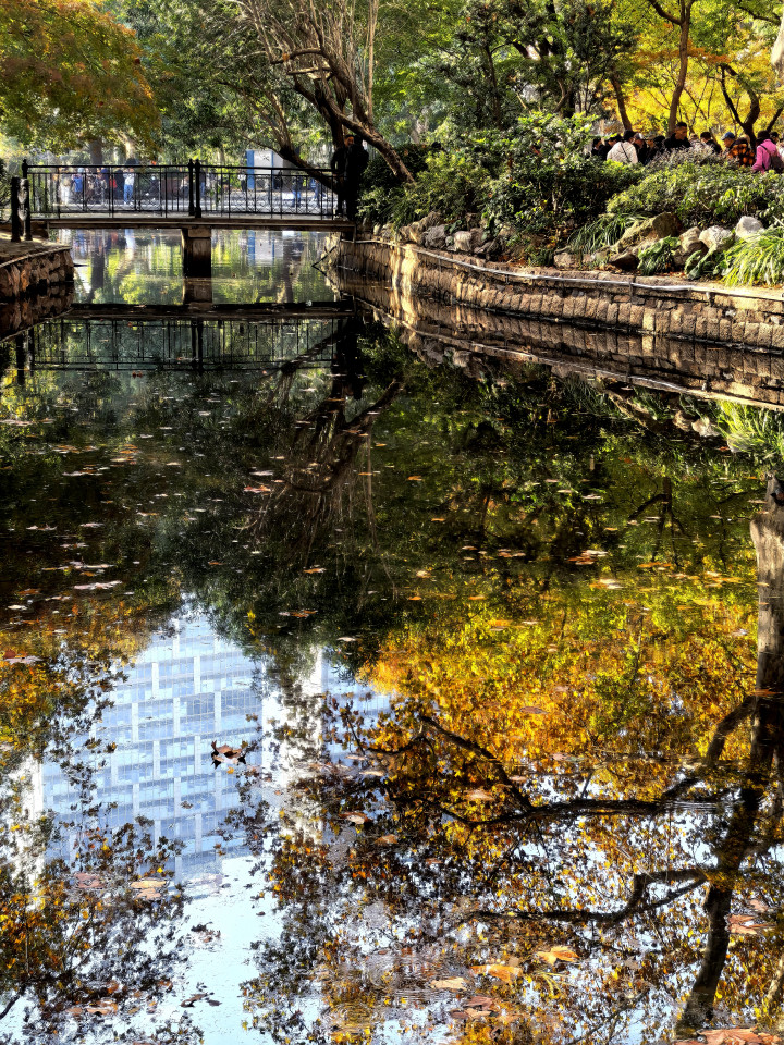 鲁迅公园拍摄红枫最佳时间是十二月上旬,这时的公园是一片红色的色彩。